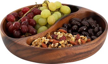 The MegaChef 10 Inch Acacia Wood Divided Serving Bowl in Dark Brown is a beautifully crafted, durable serving piece that brings a touch of rustic elegance to any dining occasion. Made from high-quality acacia wood, this bowl is naturally strong and resistant to wear, offering a long-lasting solution for your serving needs. The oil finish enhances the rich color and provides a smooth, polished surface. Featuring a practical 2-section design, this divided serving bowl is great for serving dips, appetizers, salads, or snacks, keeping your offerings neatly separated in one stylish piece. With its rounded shape, the MegaChef 10 Inch Acacia Wood Divided Serving Bowl combines functional design with timeless beauty. The acacia wood construction ensures durability, while the oil finish not only protects the bowl but also keeps it looking vibrant over time. For best care, hand wash the bowl and towel dry immediately to maintain its smooth feel and rich color. Ideal for entertaining or everyday use, this serving bowl makes an excellent addition to your kitchen or dining room, elevating your hosting experience with its natural charm and versatility. Perfect for anyone looking for a wooden serving bowl or a unique, eco-friendly dining accessory.