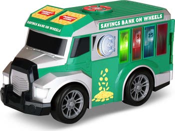 - BANK ON IT: Take it to the bank with this interactive LIGHT & SOUNDS toy that puts a new meaning in piggy bank. A great alternative to the typical piggy bank with the bonus of a toy vehicle.