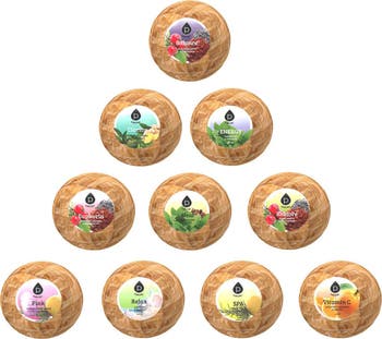 - Set includes 10 bath bombs: Balance, Pink, Clarity, Relax, Euphoria, Restore, Energy, Spa, Heal & Vitamin C