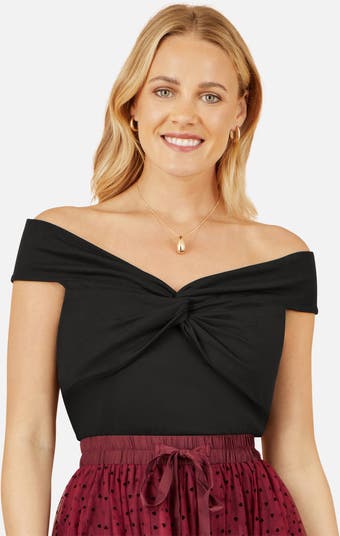 This super cute twist front top looks gorgeous paired with a soft and feminine floaty skirts this season. The off the shoulder Bardot style is super flattering and easy to wear, paired with the soft jersey fabric, this little top is a winner for the summer months.