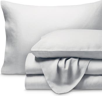 Crafted from 100% European flax, this linen sheet set offers a light, refined feel with natural durability. The fabric becomes softer over time and develops a subtle sheen with washing, creating an effortlessly relaxed look. Naturally breathable and moisture absorbent, linen supports comfortable sleep throughout the year.