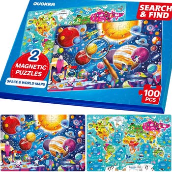 These engaging magnetic puzzle sets are designed for kids ages 3-5, offering hours of interactive learning and fun. Featuring exciting themes like ocean, space, nature, and dinosaur adventures, each set includes two puzzles with matching activity maps to spot differences, supporting the development of attention to detail, visual comparison, and logical thinking. The puzzles come with magnetic boards and illustrated guides, making assembly easy and keeping the pieces in place. The compact book-style design makes it perfect for travel, providing a portable and organized way to enjoy puzzles anywhere, while also reducing screen time.