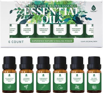 - Why Choose Our Essential Oils? 100% Pure & Natural: Each bottle contains only the purest essential oils, free from additives, fillers, and artificial fragrances. Experience nature’s true aroma in every drop! Versatile Use: Perfect for aromatherapy, massage, DIY beauty products, cleaning solutions, and more. Add a few drops to a diffuser, blend into lotions, or mix into household sprays. Therapeutic Grade: Our oils are carefully sourced to provide maximum benefits, whether you're looking to relax, rejuvenate, or refresh your environment. Included Scents & Their Benefits: Eucalyptus: Invigorate your senses and support respiratory health. Eucalyptus oil is perfect for clearing the mind and easing breathing. Lavender: The ultimate oil for relaxation. Lavender promotes restful sleep, reduces stress, and creates a calming atmosphere. Lemongrass: Energize and uplift with this zesty scent. Lemongrass also has natural antibacterial properties, making it ideal for cleaning. Mandarin: A sweet, citrusy aroma that promotes positivity and emotional balance. Mandarin oil is perfect for reducing anxiety and brightening any room. Peppermint: Revitalize your senses with peppermint’s cool and refreshing scent. Great for boosting focus and relieving tension. Tea Tree: Known for its powerful cleansing properties, tea tree oil is a natural choice for skincare and household cleaning solutions. Endless Ways to Use: Aromatherapy: Add a few drops to your diffuser to create a soothing or energizing environment. Relaxing Baths: Mix with carrier oil and add to bathwater for a spa-like experience at home. DIY Beauty: Enhance your skincare and haircare routines by adding oils to lotions, shampoos, and facial mists. Natural Cleaning: Create homemade cleaning sprays and freshen up your home naturally. Perfect for Every Occasion: Self-Care Rituals: Enhance meditation, yoga, or relaxation practices. Gift-Ready: Beautifully packaged and perfect for birthdays, holidays, or as a thoughtful gesture for loved ones. Everyday Use: Keep your home smelling fresh and inviting with natural, toxin-free scents. Bring Nature’s Goodness Home! Indulge in the natural benefits of essential oils with our 100% Pure Natural Essence Collection. From creating a calming ambiance to boosting your mood and promoting wellness, these oils are your go-to for a healthier and happier lifestyle.