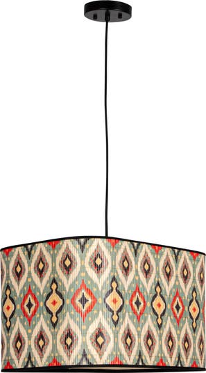 - A fusion of tradition and modernity, this pendant lamp features an organic shape with a chic printed Ikat pattern