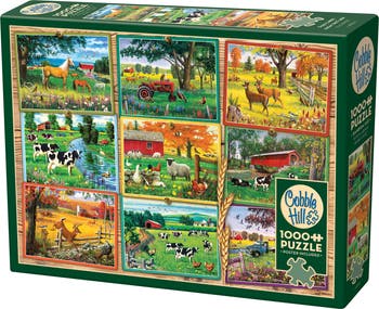 There are nine Postcards from the Farm pinned to a wooden board in this 1000 piece mini-collage puzzle. Farm animals cavort about the countryside in these nine snapshots of sunny meadows and golden fields. It’s a 1000 piece celebration of the best part of agricultural life. The postcards vary in seasons from spring, summer, to autumn and showcase horse, cows, deer, sheep, ducks, and other fun features of farms that we love like red barns, tractors, and vintage trucks. Cobble Hill puzzles are manufactured using the finest inks, premium grade blue board, linen paper, and the most endearing images. Our puzzles feature interesting random-shaped pieces - which are a departure from the more traditional predictable pieces found in most puzzles. No two pieces are alike. We also include a handy poster, making it easier for multiple people to work on the puzzle at the same time. We use quality linen print paper that gives the puzzle a luxurious look and feel. Not only does it look elegant, but it also works to reduce the glare by dispersing the light across the cross hatches much better than a smooth paper finish. We're environmentally friendly in that we use vegetable-based inks, and the cardboard is made from recycled material. Puzzles are sealed in shrink wrap. The box is thick and sturdy, so it can stand the test of time. The Cobble Hill Puzzle Company was founded in 2005 with a desire to bring quality puzzles with a loving, whimsical, and nostalgic feel to jigsaw puzzle enthusiasts and novices.