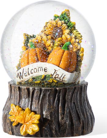 Glitzhome 100mm Fall Sunflower and Pumpkin Resin Waterglobe, Main, color, Orange