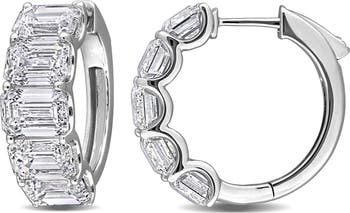 Featuring lab-grown diamonds, these hoop earrings in 14k white gold feature a total of ten emerald-cut 7x5mm lab-grown diamonds beautifully spaced along the the hoops. These earrings combine modern technology with classic design, making them a stunning addition to any jewelry collection.