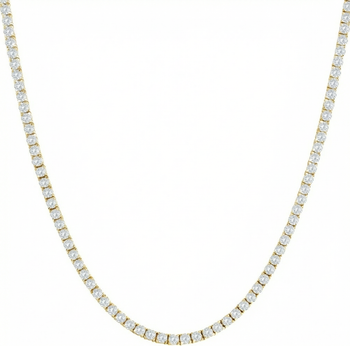 Women's high-quality tennis necklace features round brilliant cut lab grown diamonds. All diamonds are set in solid 14k yellow gold flexible high polished 16.5" mounting.