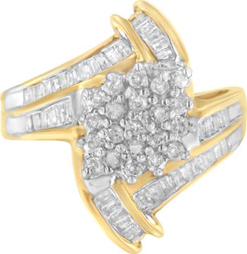 10K Gold 1.0 Cttw Round and Baguette Diamond Bypass Cluster Ring