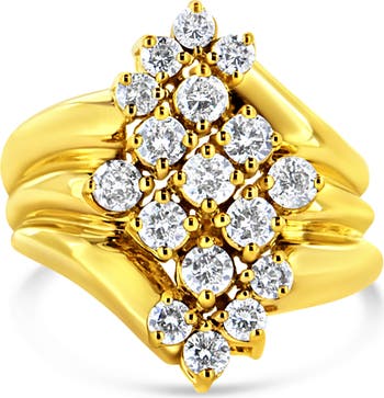 10K Gold 1 1/2 Cttw Diamond Cluster Tapered Shank Cocktail Ring