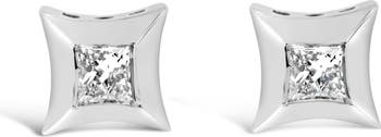 10K Gold 1/5 Cttw Invisible Set Princess-Cut Diamond Stud Earrings