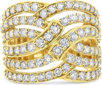 10K Gold 3.00 Cttw Diamond Multi Row Bypass Cocktail Band Ring