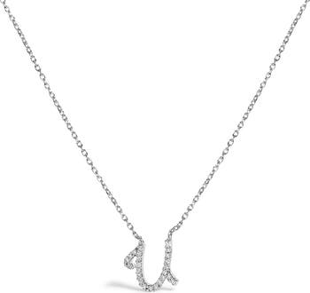 Haus of Brilliance 10K Gold Diamond Accent  A-Z Initial Script Style Pendant Necklace, Main, color, White | U