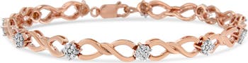 10K Rose Gold 1/2 cttw Diamond Cluster and Infinity Weave Link Bracelet