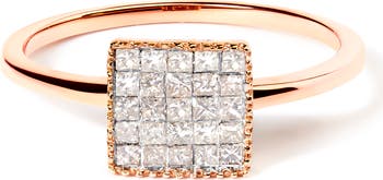 10K Rose Gold 1/3 Cttw Invisible Set Princess Cut Diamond Composite Square Shape Ring