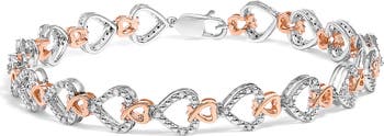 10K Rose Gold Plated Sterling Silver 1/4 Cttw Diamond Heart Link Bracelet