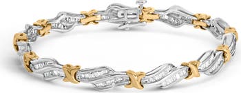 Haus of Brilliance 10k Two-Toned Gold 2.00 Cttw Diamond Weave and "X" Spiral Link Bracelet, Main, color, Yellow