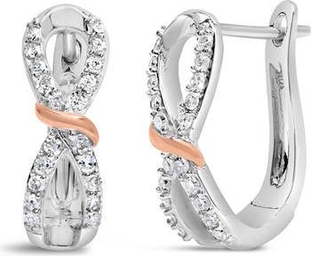 10K White and Rose Gold 1/3 Ct Diamond Infinite and Ribbon Hoop Earrings