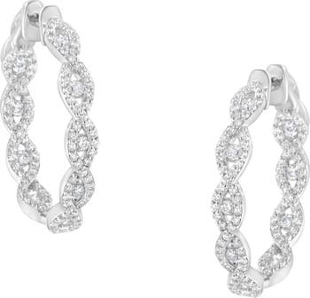 10K White Gold 1 1/2 cttw Diamond Hoop Earrings