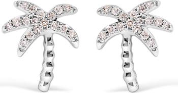 10K White Gold 1/10 Ct Diamond Encrusted Palm Tree Stud Earrings