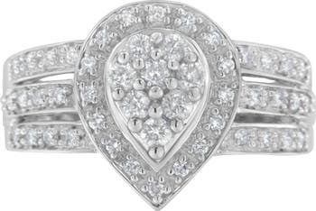 10K White Gold 1/2 Cttw Diamond Cocktail Teardrop Ring
