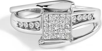 10K White Gold 1/3 Cttw Princess-cut Diamond Cluster Bypass Ring