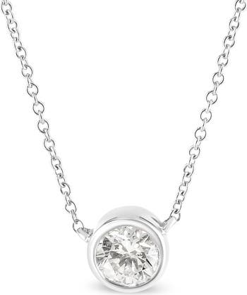 10K White Gold 1/3 Cttw Round Bezel-Set Diamond Solitaire Pendant Necklace