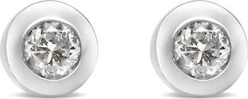 10K White Gold 1/5 Ct Near Colorless Diamond Bezel- Stud Earrings