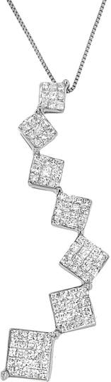 Add shine and a bit of sparkle to your day with this luxurious uniquely shaped pendant. This ten karats white gold snake journey pendant features square mounts that are connected to the corners in a curving design. Each of the squares is covered with 1ct princess cut diamonds to add gleaming sparkle to this dynamic form. This elegant jewel is sure to complement any evening attire with grace.