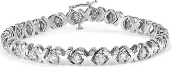 10k White Gold 2.00 Cttw Round-Cut Diamond "XO XO" Link Bracelet