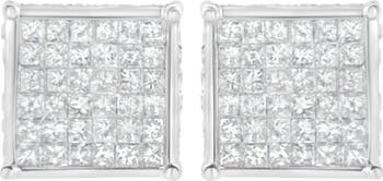 Timeless and tasteful, these fancy-shape diamond stud earrings complement one's classic sense of style. Crafted in cool 10K white gold, each square composite earring shimmers with a six-by-six grid of sparkling princess-cut diamonds. These earrings are also set with round cut diamonds along the side for an additional boost of sparkle. Captivating with 1 ct. t.w. of diamonds and a brilliant buffed luster, these post earrings secure comfortably with screw backs. These earrings can be worn by both men and women, making this the perfect gift for anyone.