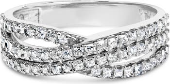10K White Gold 3/4 Cttw Princess Natural Diamond Split Shank and Weave Band Ring