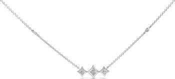 Haus of Brilliance 10K White Gold Bezel Set Diamond 3 Stone Kite Shape and Station Necklace, Alternate, color, White