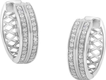 Exuberant hoop earrings made with 10k white gold and genuine diamonds. The round format of the earring contains 56 diamonds with a cut-shape and a pave setting. This silver-plated colored jewelry piece comes with lever-backs and presents a 1/2ct total diamond weight. With an incredible shimmering effect, these earrings are a fantastic choice for special occasions and formal events.