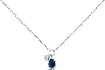 Evoke the essence of timeless elegance with this 10K white gold necklace, glinting with a rhodium finish to ensure an everlasting shimmer. At its heart, the piece features a bewitchingly deep blue, heat-treated natural sapphire, cradled in a bezel setting a testament to refined grace. Accompanying this gem is a lustrous natural diamond, also bezel-set to rotate light magnificently with each movement. This blend of gems delicately dangles from an 18-inch cable chain, secured effortlessly by a spring ring clasp, weaving sophistication into everyday wear or enhancing special occasions with its captivating charm.