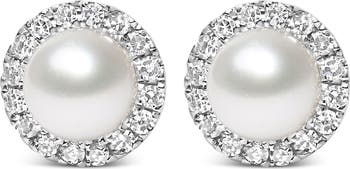 10K White Gold Pearl & 1/7 Cttw Diamond Halo Stud Earring