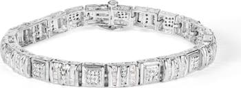 Round and baguette cut diamonds shimmer against a white gold finish on this exquisite two-carat diamond bracelet. Each square link comes together, creating a unique geometric design sure to dazzle her.