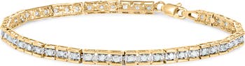 Draped in the luxurious luster of 10K yellow gold, this bracelet is a masterpiece tailored for the connoisseur. One carat of pristine, natural round diamonds glitter within a pave setting, casting I-J color and I3-Promo clarity—a celestial constellation around your wrist. The sophisticated link design intertwines elegantly, creating a seamless flow of refinement and glamour. Each clasp clicks with the promise of security and durability, closing with a refined lobster claw mechanism to encircle your wrist in opulence. Sized to perfection at seven inches, it stands as an emblem of grace, adding a touch of splendor to every gesture. A true testament to timeless craftsmanship and exquisite taste, this bracelet is more than an accessory; it's a treasured connection to the eternal dance of luxury and style.