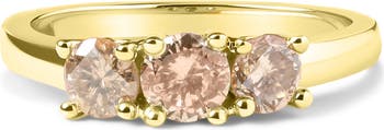 10K Yellow Gold 1.00 Cttw Champagne Diamond 3-Stone Band Ring