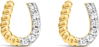 10K Yellow Gold 1/10 Ct Braided Horseshoe Stud Earrings