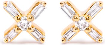Haus of Brilliance 10K Yellow Gold 1/10 Ct Round and Baguette Diamond Criss Cross X Stud Earring, Alternate, color, Yellow
