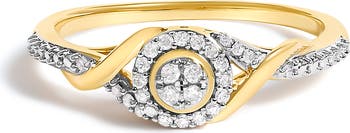 10K Yellow Gold 1/10 Cttw Diamond Swirl and Halo Promise Ring