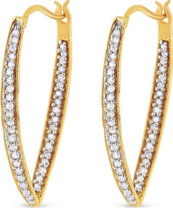 Dress up any outfit with this trendy yet timeless modern hoops. These earrings are crafted in gleaming 10k yellow gold and have an outside-inside design embellished with beautiful, natural diamonds. The diamonds are round-cut and sparkle in an elegant prong setting. The total carat weight of these earrings are 1/2 c.t. They come with a clip-on mechanism for a safe and secure fit on your ears. You can't go wrong investing in these stunning hoops.