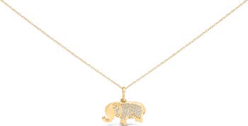 10K Yellow Gold 1/5 Cttw Diamond Elephant Pendant Necklace