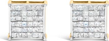 Indulge in the timeless elegance of these exquisite stud earrings, masterfully crafted from luxurious 10K yellow gold. Each piece radiates sophistication with its square silhouette that gracefully encapsulates a cluster of natural princess-cut diamonds. These gems, boasting an I-J color and I2-I3 clarity, are meticulously arranged in an invisible set, creating a dazzling mirage of seamless sparkle that accentuates its pristine frame. Secured with push-back findings, they promise comfort while exuding a classic charm that complements any ensemble or occasion. The harmonious blend of refined craftsmanship and classic design makes these earrings an essential testament to enduring style.
