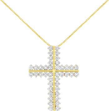 10K Yellow Gold 4.0 Cttw Diamond Two Row Cross 18" Pendant Necklace