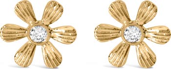 10K Yellow Gold Bezel Diamond Accent Hammered Finish Floral Stud Earrings