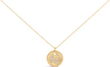 Embrace the celestial elegance with this exquisite pendant necklace, finely crafted from luxurious 10K yellow gold. The enchanting round pendant stands out with its intricately textured, rope-like border that dances with light and shadow, enhancing its dynamic allure. Nestled within this golden frame, natural diamonds twinkle in a romantic crescent formation, their brilliant cuts casting captivating reflections. Each gemstone, echoing the luminescence of a starlit sky, adds a whisper of opulence and fascination. Completing this masterpiece is an 18-inch delicate chain that drapes gracefully, promising to lay beautifully against the skin. This necklace not only accessorizes but also enlivens any ensemble with a touch of sophistication and celestial charm. Perfect for those who cherish refined beauty intertwined with an understated sparkle.