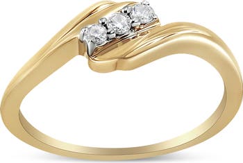 10K Yellow Gold over Silver 1/10 Cttw Diamond Three-Stone Bypass Ring