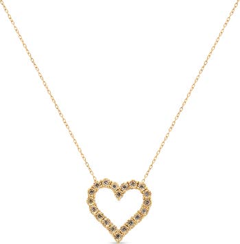 10K Yellow Gold over Silver 1/2 Cttw Champagne Diamond Heart Pendant Necklace